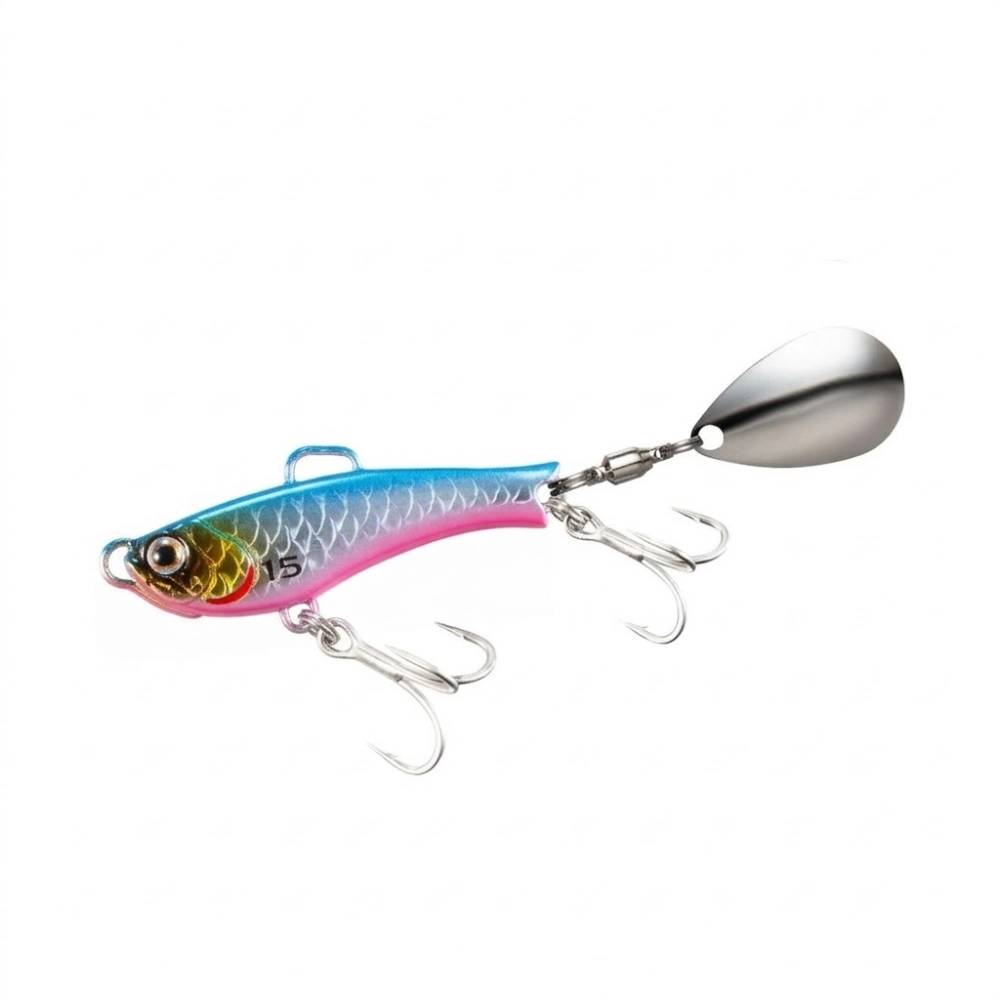 Contraste Bi-Color: O peixe vê o azul de cima e o rosa de baixo. Durante o movimento de rotação da lâmina (blade), isso cria um efeito de "pisca-pisca" que irrita o predador e induz o ataque por agressividade.