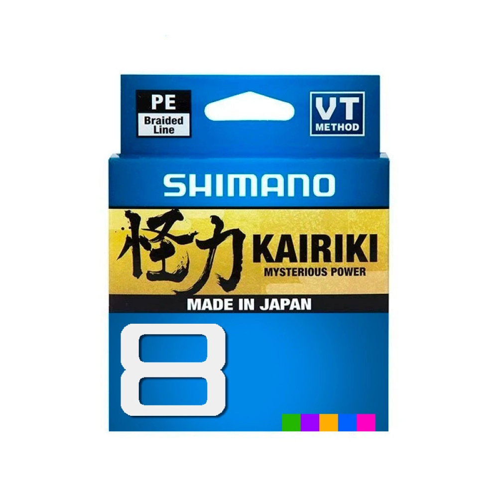 Kairiki 8 da Shimano adota a nova tecnologia de construção em trança VT. Apresentando 8 fios e incorporando fabricação japonesa premium, a nova construção VT de trama apertada é criada através da aplicação de alta tensão em direções opostas durante o processo de trançamento.